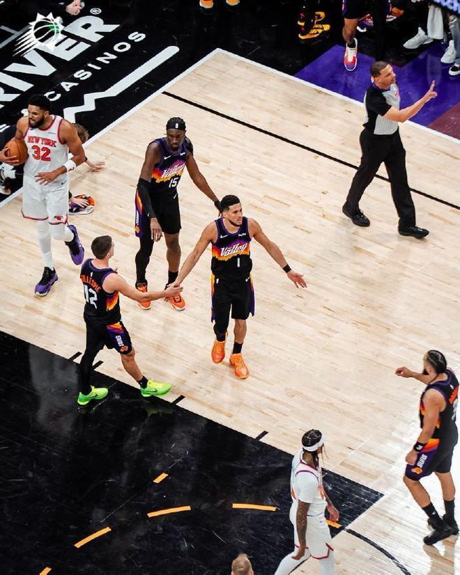 次節(jié)比賽,雙方進(jìn)攻火力升級均是單節(jié)轟下30+得分,尼克斯更是首次完成單節(jié)35+。太陽維持32-27領(lǐng)先,尼克斯連得5分追平,雙方隨後持續(xù)緊咬比分,開啟瘋狂拉鋸戰(zhàn)纏鬥。第二節(jié)剩餘時(shí)間雙方分差均是不超過5分,太陽單節(jié)34-37被追回3分,上半場結(jié)束太陽62-60領(lǐng)先尼克斯。前兩節(jié)比賽,尼克斯三分20中9,佈倫森13分、克拉克森與麥克佈萊德均12分;太陽三分21中8,佈克17分4助攻與狄龍4記三分20分。