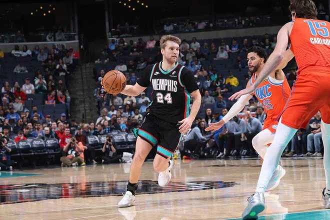 雷霆上一場(chǎng)主場(chǎng)129-125加時(shí)險(xiǎn)勝爵士,灰熊上一場(chǎng)主場(chǎng)98-117輸給太陽(yáng),本賽季前兩次交鋒雷霆均戰(zhàn)勝灰熊。本場(chǎng)灰熊缺少莫蘭特、伊迪等,雷霆缺少亞歷山大、霍姆格倫、哈爾滕施泰因等多位主力。首節(jié)開(kāi)局雷霆8-3領(lǐng)先,灰熊連得5分追平,雙方纏鬥至雷霆14-13領(lǐng)先?;倚軆?nèi)外開(kāi)花一波9-0攻勢(shì)反超比分,雷霆連得5分,灰熊多點(diǎn)開(kāi)花重新擴(kuò)大兩位數(shù)領(lǐng)先優(yōu)勢(shì),首節(jié)結(jié)束雷霆25-35落後灰熊。首節(jié)雷霆23中9不足4成準(zhǔn)星,其中三分9中2;灰熊28中12,其中三分10中5,蘭代爾3中3得到9分。