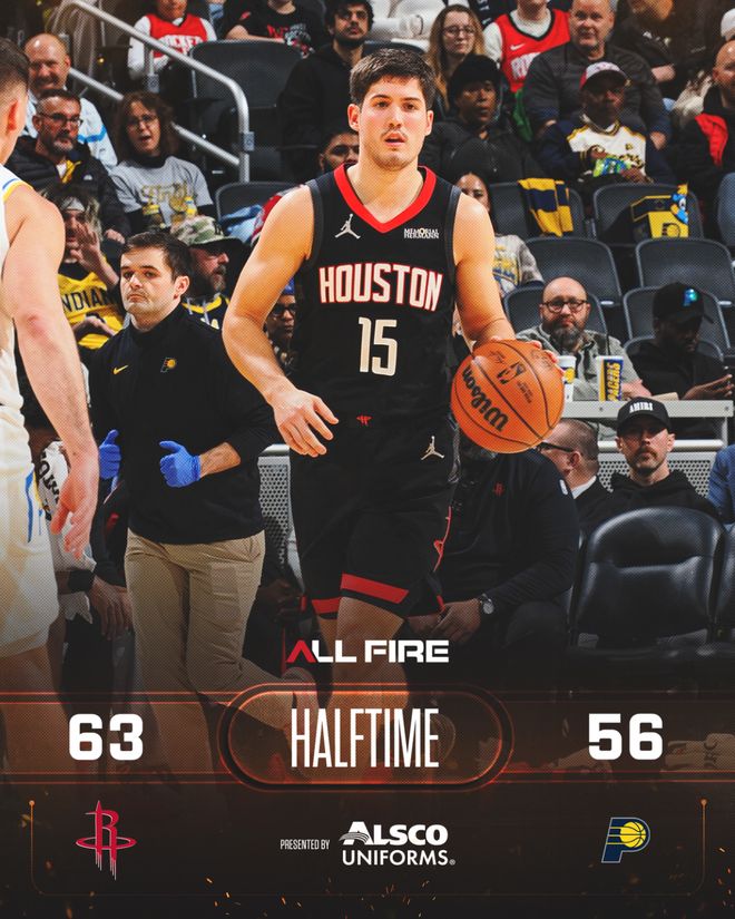 申京和霍勒迪合取5分開始第二節(jié),火箭隊(duì)反超領(lǐng)跑。30平、32平后麥康奈爾三分命中,馬瑟林打3分成功,步行者隊(duì)再次領(lǐng)先。申京保持攻擊性又拿4分追成41平,沃克三分回應(yīng),奈史密斯打3分成功,半場(chǎng)前3分15秒時(shí)步行者隊(duì)以52-46領(lǐng)先。史密斯突然找到手感,連中2個(gè)三分球率隊(duì)打出11-2的反擊波,火箭隊(duì)反超3分。馬瑟林兩罰追近,泰特、湯普森和謝潑德輪流得分,火箭隊(duì)連拿6分結(jié)束第二節(jié),他們以63-56領(lǐng)先7分進(jìn)入半場(chǎng)休息。