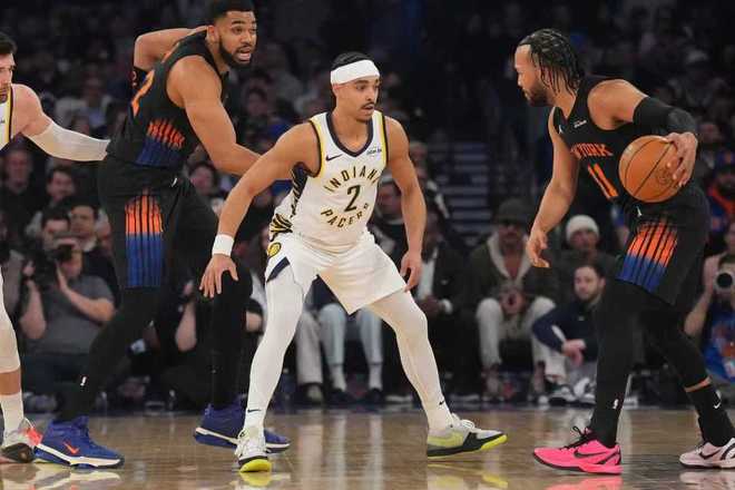 尼克斯上一場客場111-89大勝凱爾特人,步行者過去4場連輸火箭、爵士、雄鹿與猛龍遭遇4連敗,本賽季首次交鋒尼克斯客場114-113險勝步行者。本場尼克斯缺少阿奴諾比、麥克布萊德與羅賓遜,步行者缺少祖巴茨、哈利伯頓、托平等。首節(jié)開局尼克斯9-3領先,并在之后維持12-5領先,步行者一波8-0攻勢反超,尼克斯纏斗至14-16落后。尼克斯內外開花一波8-0攻勢反超,西亞卡姆與內姆哈德連續(xù)得分,尼克斯26-27被反超。雙方繼續(xù)交替領先纏斗,首節(jié)結束尼克斯33-32領先步行者。首節(jié)步行者三分17中7,西亞卡姆7中4得到10分;尼克斯三分9中3,布倫森8中4得到11分。