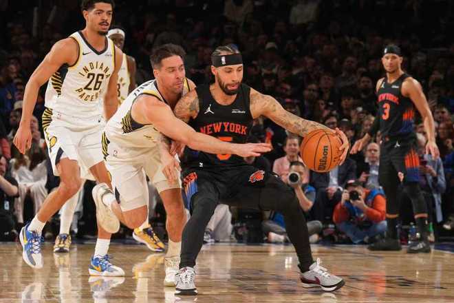 進入第四節(jié)比賽,唐斯率先三分命中,步行者追到96-96,雙方隨后持續(xù)交替領先纏斗。尼克斯逐步以104-107落后,雙方繼續(xù)纏斗至110-110,尼克斯之后114-113領先,內史密斯連得4分打停尼克斯。布倫森中投得分,內姆哈德上籃回敬,布倫森兩罰一中,西亞卡姆拋射擴大4分優(yōu)勢。布倫森2+1續(xù)命,雙方接連打鐵,西亞卡姆中投擴大3分優(yōu)勢,尼克斯請求暫停。布倫森三分不中,步行者碰出界尼克斯繼續(xù)獲得球權,布里奇斯被戰(zhàn)術犯規(guī)兩罰全中,西亞卡姆被犯規(guī)兩罰一中。沙梅特絕殺三分不中,唐斯補籃造犯規(guī)兩罰全中扳平,雙方常規(guī)時間維持124-124。