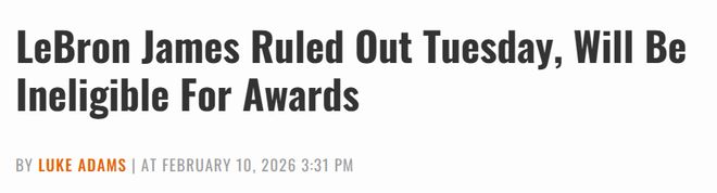 詹姆斯的缺陣是其中最受關注的一點,這將是他本賽季缺席的第18場比賽。這意味著他本賽季將無法達到65場的出場門檻,而這是球員有資格競爭賽季末各大獎項的最低要求。