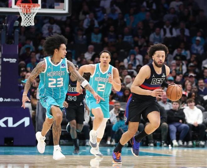 黃蜂過去9場豪取9連勝狀態(tài)出色,活塞上一場主場118-80大勝終結(jié)尼克斯8連勝,本賽季首次交鋒活塞主場112-86大勝黃蜂。本場活塞缺少霍蘭、史密斯,黃蜂缺少麥克尼利。首節(jié)開局活塞6-0領(lǐng)先,黃蜂連追5分,雙方纏斗至活塞10-9領(lǐng)先。活塞一波6-0攻勢取得領(lǐng)先,黃蜂內(nèi)外開花一波10-2攻勢反超,活塞逐步27-24奪回領(lǐng)先。黃蜂回敬一波9-2攻勢,首節(jié)結(jié)束活塞29-33落后黃蜂。首節(jié)活塞26中12,其中三分6中0,坎寧安7中1僅得到4+3+3;黃蜂16中9,其中三分10中6,米勒與克努佩爾均9分。