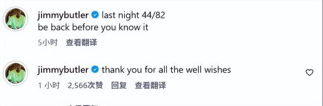 在勇士官方宣布這一消息前,巴特勒已經(jīng)更新社媒,曬出自己的PS“將軍照”,配上了大量勇士比賽照,并寫道:“44/82,我很快就會回來!”據(jù)悉,巴特勒此舉一語雙關(guān),明面上是一位將軍名字叫Soreness,但也可以翻譯成“全身酸痛”,放在NBA傷病報告里,基本意思是球員只是身體疲勞、有點不舒服,通常意味著沒有大事。