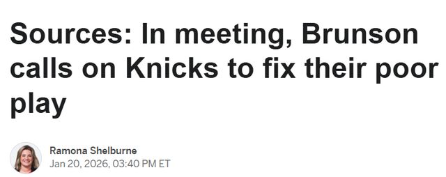 多位消息人士稱,球隊(duì)在11場(chǎng)比賽中輸?shù)?場(chǎng),并吞下4連敗后,布倫森在會(huì)議中向隊(duì)友們明確,尼克斯必須在隊(duì)內(nèi)為一月以來(lái)的糟糕表現(xiàn)尋找解決辦法,而非寄希望于教練組。