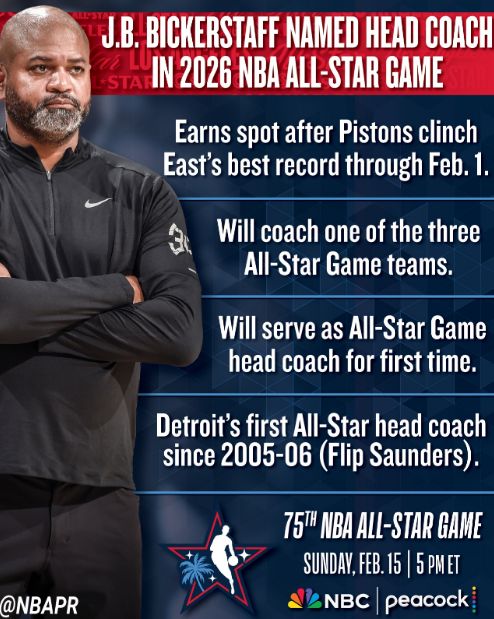 北京時間1月25日,伴隨凱爾特人111-114被公牛三分準(zhǔn)絕殺,活塞主帥成為“大贏家”。如今活塞官方正式曬出海報宣布,主帥比克斯塔夫當(dāng)選全明星主教練,成為活塞自2005-06賽季菲利普-桑德斯后,時隔20年再次有主帥執(zhí)教全明星賽。