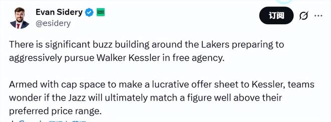 ESPN記者文霍斯特多次指出,湖人是凱斯勒的合理下家,并質(zhì)疑爵士是否真的愿意把大部分可用薪金空間砸在三名前場(chǎng)球員身上。