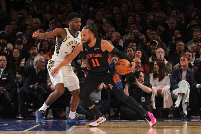 尼克斯上一場客場111-89大勝凱爾特人,步行者過去4場連輸火箭、爵士、雄鹿與猛龍遭遇4連敗,本賽季首次交鋒尼克斯客場114-113險勝步行者。本場尼克斯缺少阿奴諾比、麥克布萊德與羅賓遜,步行者缺少祖巴茨、哈利伯頓、托平等。首節(jié)開局尼克斯9-3領先,并在之后維持12-5領先,步行者一波8-0攻勢反超,尼克斯纏斗至14-16落后。尼克斯內外開花一波8-0攻勢反超,西亞卡姆與內姆哈德連續(xù)得分,尼克斯26-27被反超。雙方繼續(xù)交替領先纏斗,首節(jié)結束尼克斯33-32領先步行者。首節(jié)步行者三分17中7,西亞卡姆7中4得到10分;尼克斯三分9中3,布倫森8中4得到11分。
