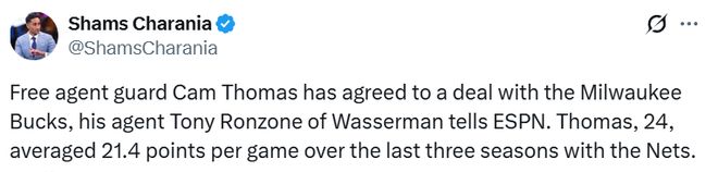 此前,名記Fischer就報(bào)道,盡管籃網(wǎng)此前收到過關(guān)于托馬斯的交易報(bào)價(jià),但雄鹿是唯一一支真正對他有實(shí)質(zhì)興趣的球隊(duì)。如今托馬斯成為自由球員,雄鹿簽下也是順理成章。